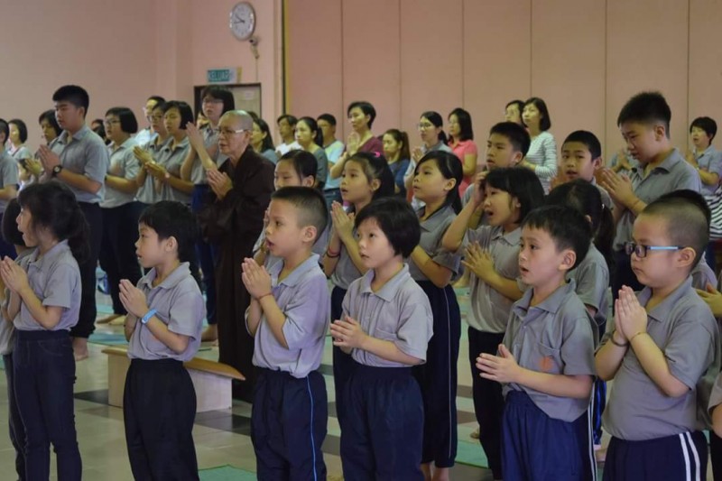 2018年 3月 4日,虽然元宵节已过,但是檀香周日佛学班庆祝春节的气氛也不减。全体师生、家族和家长齐聚五楼多元化礼堂、诵经祈福、听闻佛法、抄写《吉祥经》、亲子互动和一起享用素餐,场面温馨。