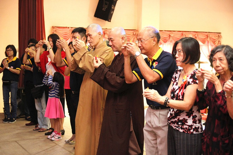 会上分批举行联合点灯仪式。在仪式及台上演出完毕后,活动也告一段落,与会者也移步至隔壁享用丰富的素食自由餐。出席仪式者包括真信法师等。檀香寺住持唯悟法师也在较后与大家一起享用午餐。