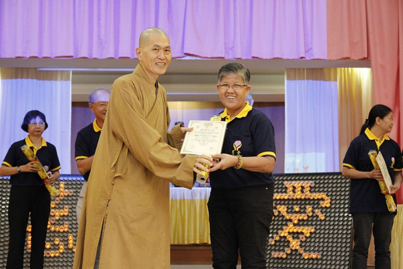 会上由真如法师代表在主席许立全陪同下,颁发奖状给义务医师,分别是:吴果强、陈如炳、李群雁、林莉容、甘美绣、周慧明、陈佩贤、王绥雰、王敏鹏、陈素华、钟秀爱;许立全也颁发纪念品给参与演出的个人及团体代表。