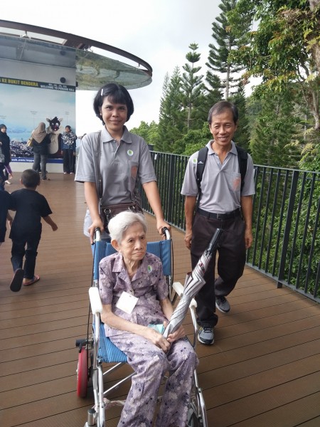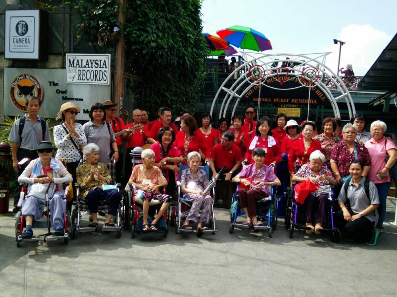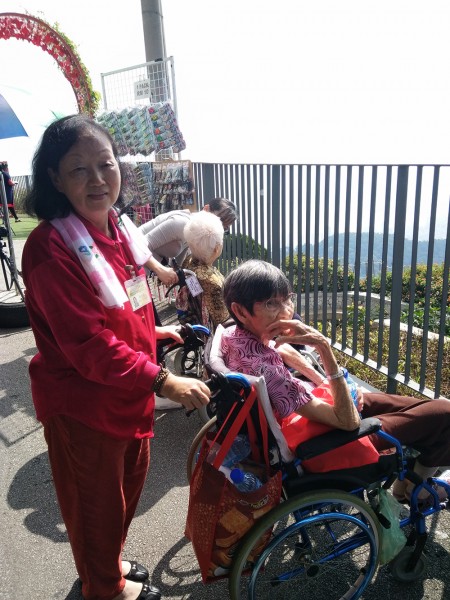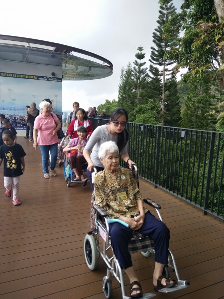 来自檀香寺晚晴苑的10名老菩萨在一名女护士及另9名志工的帮扶下,共20人,于3月18日乘坐缆车上升旗山,从高鸟瞰乔治市全景,同时欣赏主办单位玫瑰慈善机构(Rose Charities)准备的表演,在山上享用午餐。