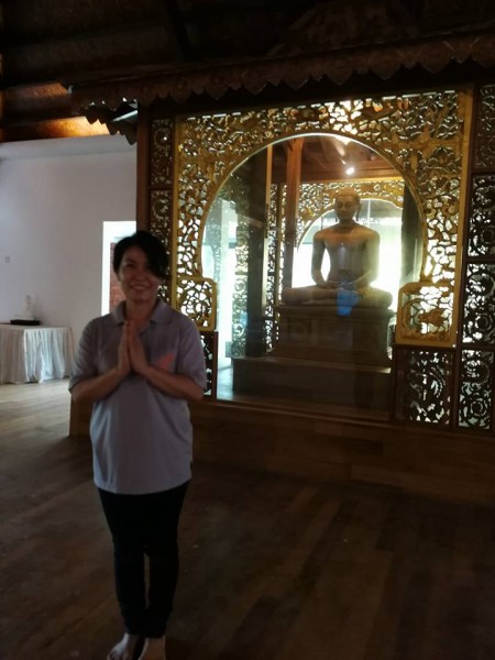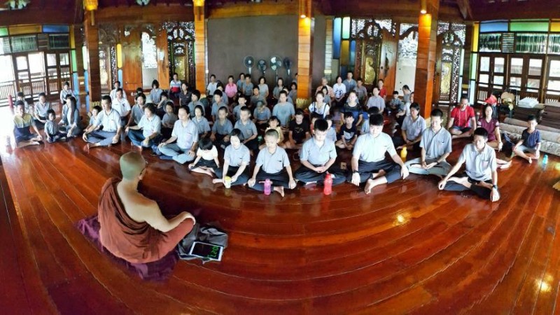大家礼拜佛陀圣像及尊者后,尊者就为我们开示。尊者说有家长要求他教大家打坐。打坐训练的是我们的心。因为烦躁,所以想学打坐来对治。尊者提出一点让大家思考:在日常生活中,人声的吵杂往往会让我们起烦恼,但自然界的虫鸣声大家却都可以接纳。学习打坐可以让我们的心平静,不受外界的影响。开示完毕后,立往达尊者略略指导坐姿,然后让我们学打坐几分钟。礼谢尊者后,大家就看看四周。周围风景似画,美极了。