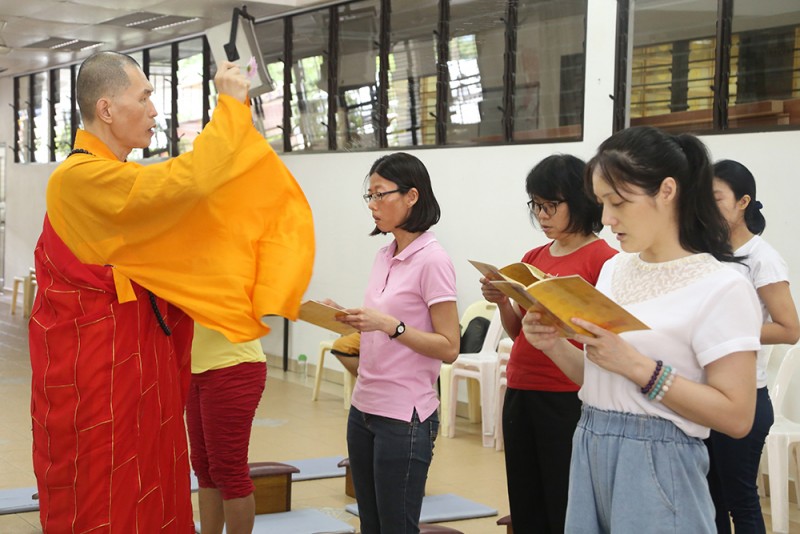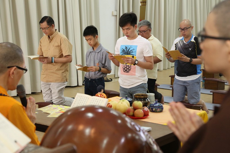其中有6人参加三皈依仪式,7人受持五戒,这也是檀香寺每年三度举办传授三皈五戒的其中一次,每次配合观音圣诞举行。
