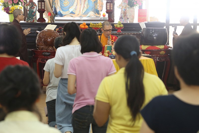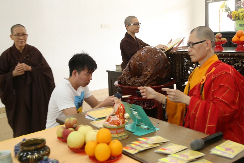 法师说,皈依三宝,是解脫生死輪迴的基礎,佛陀有教导我們解脱生死及成佛之法:a、止恶、行善(三归、五戒、十善),使我们將來不墮入三惡道中;b、持戒、修定、修慧:將來可以解脱生死;c、仰慕佛陀圆满人格,发菩提心,行菩萨道,以成佛作为我们的目标。