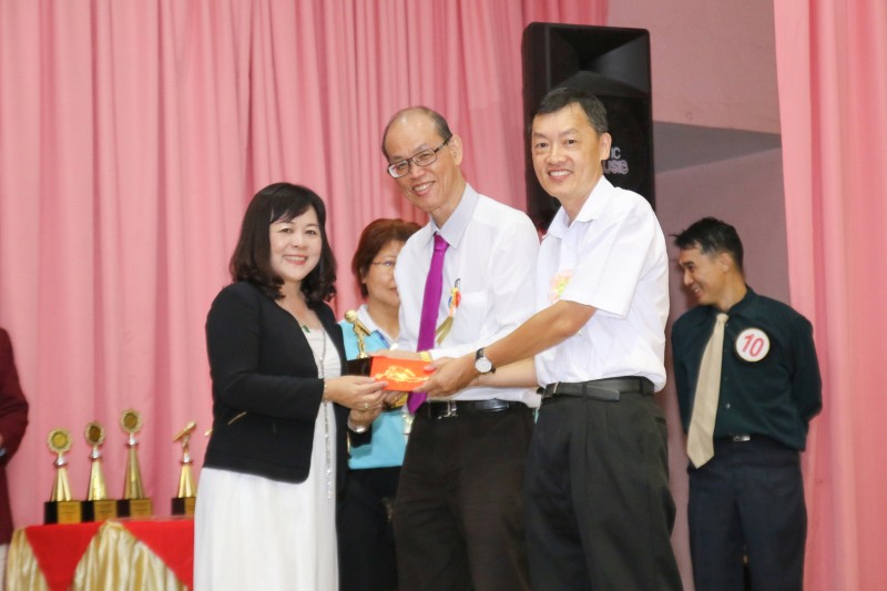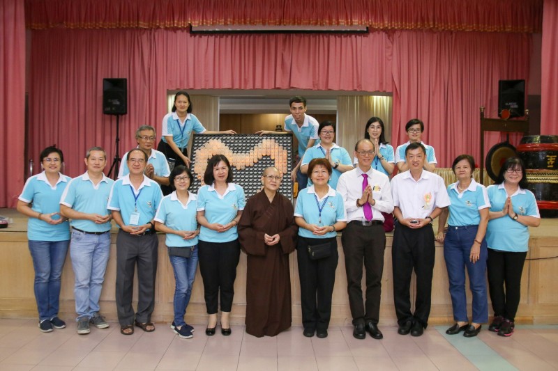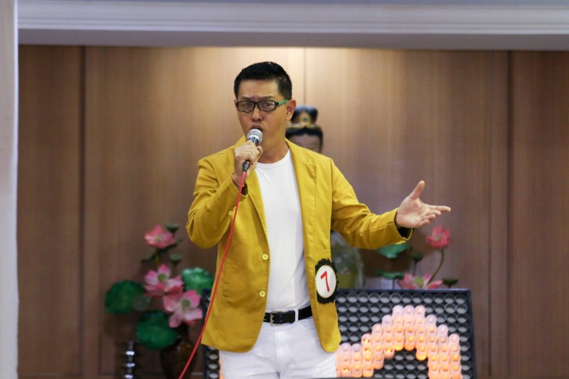 筹委会主席廖财喜在台上致词中感谢所有筹委会、檀香寺职工,义工在这几个月来的协助与付出。