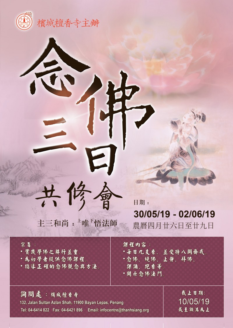 Submitted by soonchien on Tue, 02/04/2019 - 09:40 AttachmentSize 念佛三日共修会报名表格258.33 KB 宣传 Log in to post comments4403 reads
