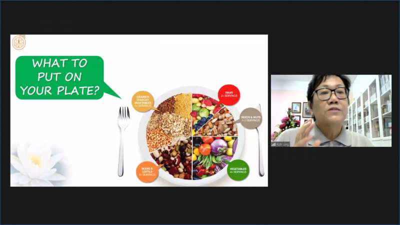 她表示,在日常的饮食中,我们不应该偏重吃某一种食物,反而应该摄取各种不同食物,以达致一个均衡的营养。素食者可在每天三餐的饮食中实行五色饮食,每天烹调至少四种颜色或以上的蔬菜或水果,均衡地摄取不同营养,食物选择以多样化为主,增加获取各类营养素的机会。她提倡彩虹饮食是一种健康饮食的最新趋势。在这个饮食里,我们会吃各种颜色的蔬菜水果,包含了红、黄、绿、紫、白。透过各种颜色丰富的蔬果,我们能够从中获取不同的好处,因为每一种颜色的蔬果都隐藏着不一样的益处。