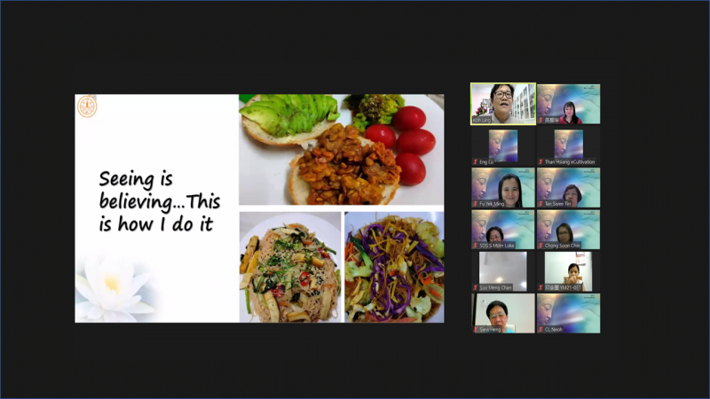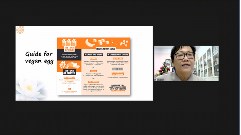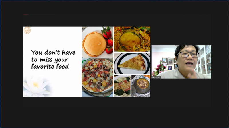 檀香在家僧团成员及国际佛教大学理事高美玲居士分享《纯素主义》,为大家讲解如何把纯素主义落实在生活中呢?首先,她分享她开始持素的原因,幽默风趣地分享她一段短短的吃素经历。