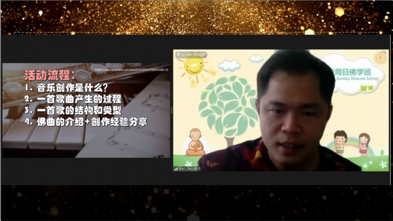 这是一个被音符填满的周日早晨。檀香周日佛学班通过云端请来了黄伟钦老师与大家以音乐同乐。在“乐定你”主题的邀约下,小菩萨们在轻松和欢悦的气氛下共赴了一场迷你音乐创作分享会。