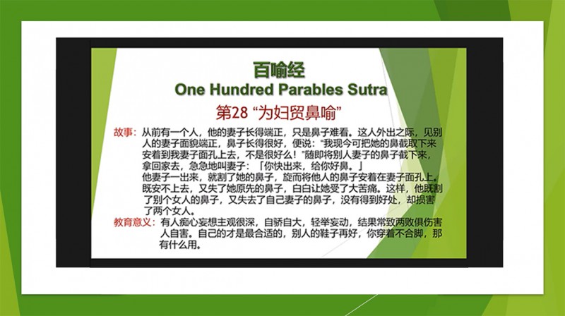 《百喻经》里一共有九十八则譬喻故事,这些小故事通俗易懂,生动活泼,反映佛教的基本思想和精辟的教义。如果您错过了佛法分享,可以从以上链接回顾佛法分享,聆听林丽芳居士为大家讲解《百喻经》里的故事。