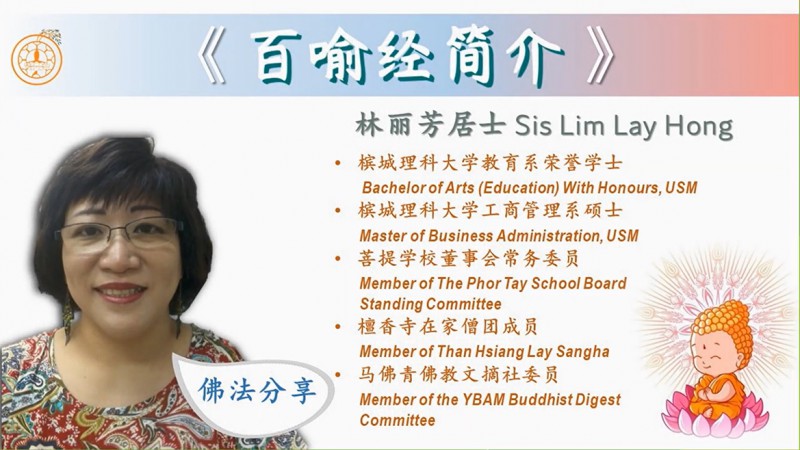 在这世界上,每个人都有属于自己独特的故事。你有听说过《百喻经》里的故事吗?我们的祖师非常有智慧,用尽不同的方式来传递佛法,才不至于让法宝流失。其中一个善巧方便就是通过说故事的方式来传递佛陀的智慧。檀香寺在家僧团成员 - 林丽芳居士再次邀请到上线与大家结法缘,分享生动有趣小故事 - 《百喻经》。