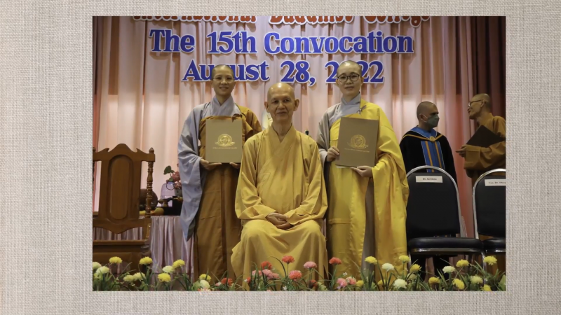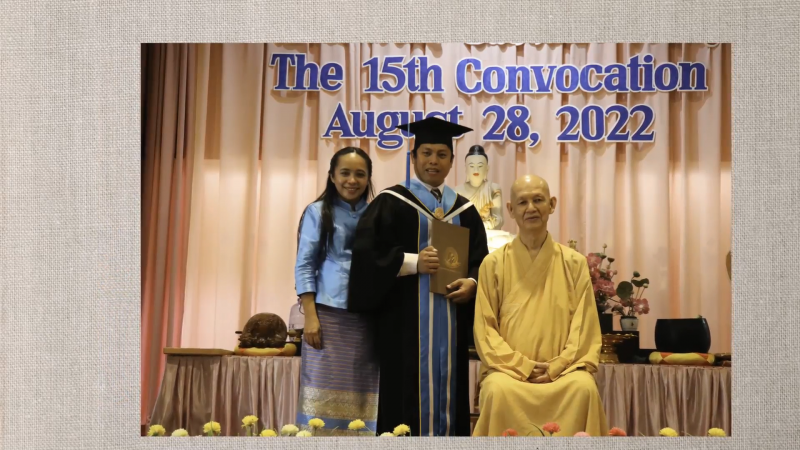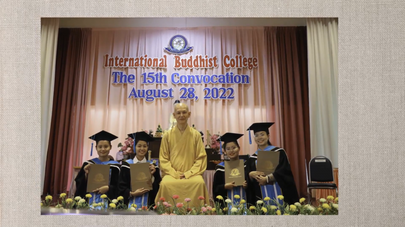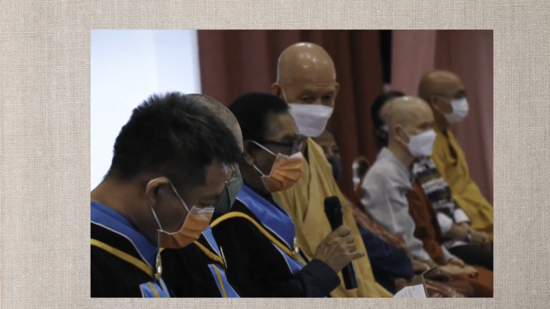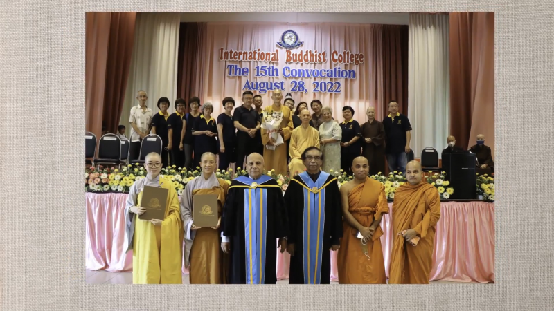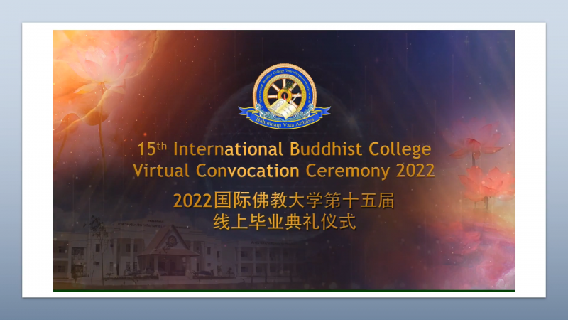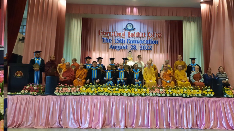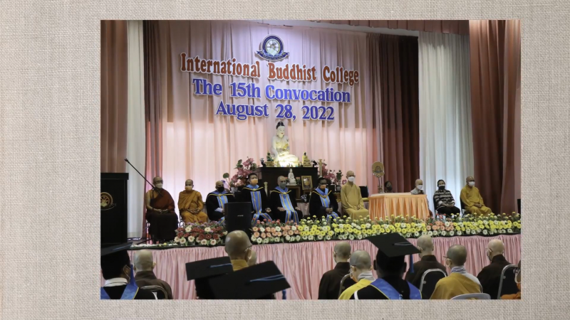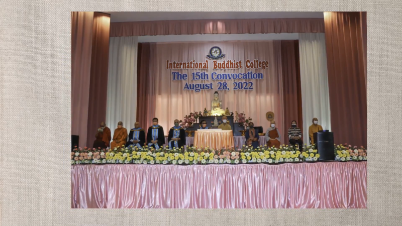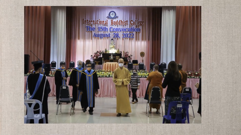 国际佛教大学今天举办第十五届毕业典礼,泰国时间是下午一时三十分正,大会司仪开始报告在鼓声及钟声敲响后,全体毕业生及大学教职员列队进入庄严的会场。