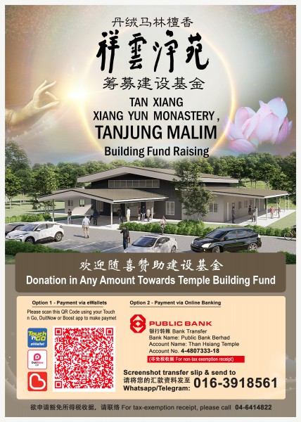 伯圆长老为这所丛林道场取名为祥雲净苑。檀香祥雲淨苑座落丹絨馬林烏魯,佔地廿依格,已被定格為檀香马来西亚总道场,命名为“丹绒马林檀香祥雲净苑“。