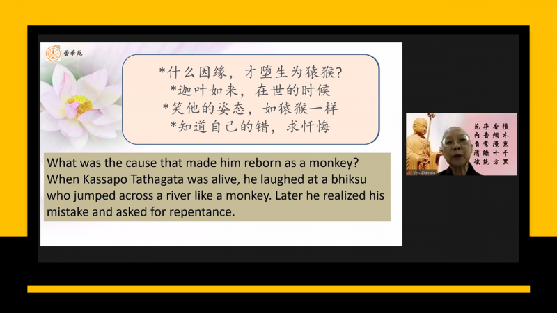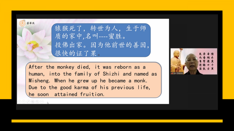 我们感恩檀香寺常住-尊敬的上真下修法师上线为我们开示精彩的说古谈心系列八-小小故事,大大启示。大家在轻松和欢悦的气氛下共赴了一场故事分享会。