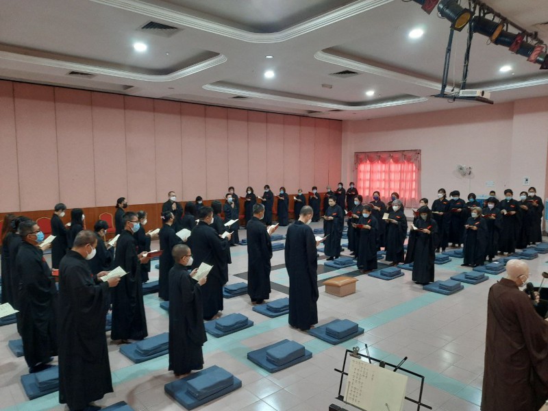 随喜赞叹大家参加檀香寺八关斋戒共修法会。自 疫情以来,今天是五十一位善友们首次在此共聚在五楼多元化礼堂,发心放下万缘,并以虔诚的恭敬心来礼敬三宝,一起来忏悔、发愿,受持一日一夜的八关斋戒。
