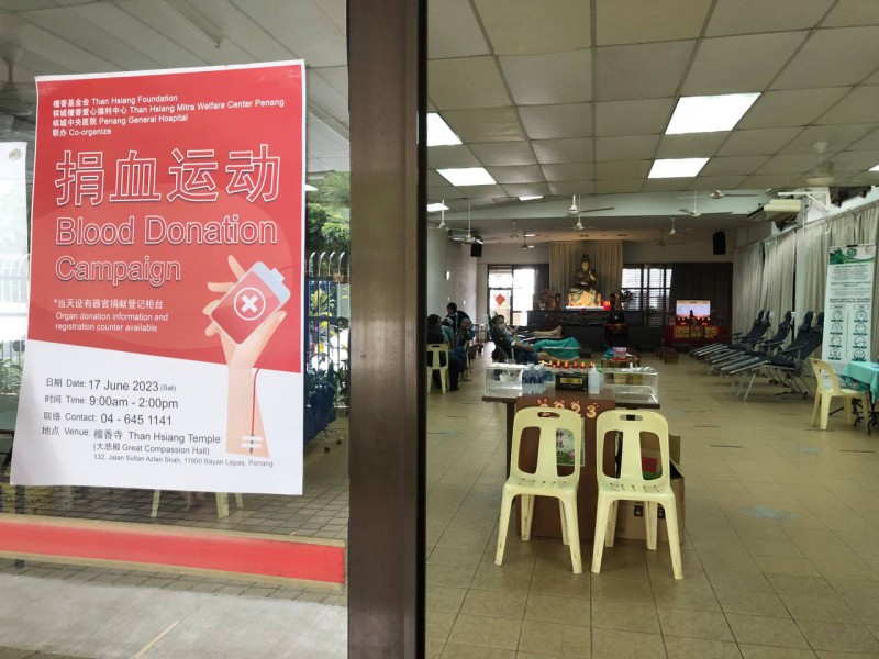 为了提高公众对捐血的认识及增加血液库存,槟城檀香爱心福利中心和槟城中央医院于2023年6月17日(星期六)上午9时至下午2时举办了捐血运动。为了方便公众们参与捐血,在檀香寺大悲殿设立了临时捐血点,提供舒适的捐献环境,共有58人响应今天的活动,成功募到45包血。