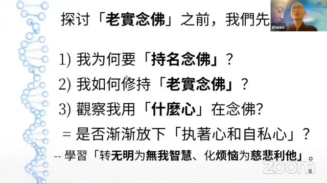 在探讨「老實念佛」之前, 真如法师要大家思考:我为何要「持名念佛」?我如何修持「老實念佛」?我用「什麼心」在念佛?