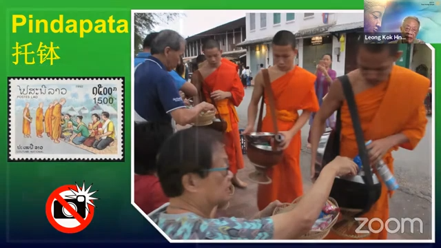 琅勃拉邦有大概30多间寺庙、千多位出家人,每天早上,出家人会沿着制定的路线出门托钵,每间寺庙的路线都不同。托钵的行列大概从早上6点多开始,因为出家人过午不食,糯米比较耐饱,因此如果要参加托钵,就要早上5点多起床,然后买糯米来供养出家人,期间不能近距离接触出家人,也不能够吵闹吵闹或者跟出家人拍照,要带着恭敬的心。出家人托钵回到寺庙之后,会把托钵到的食物全部与出家众分享,一部分则保留着午餐用,假如还有多余的话,就会送给寺庙旁边的贫苦家庭儿童。