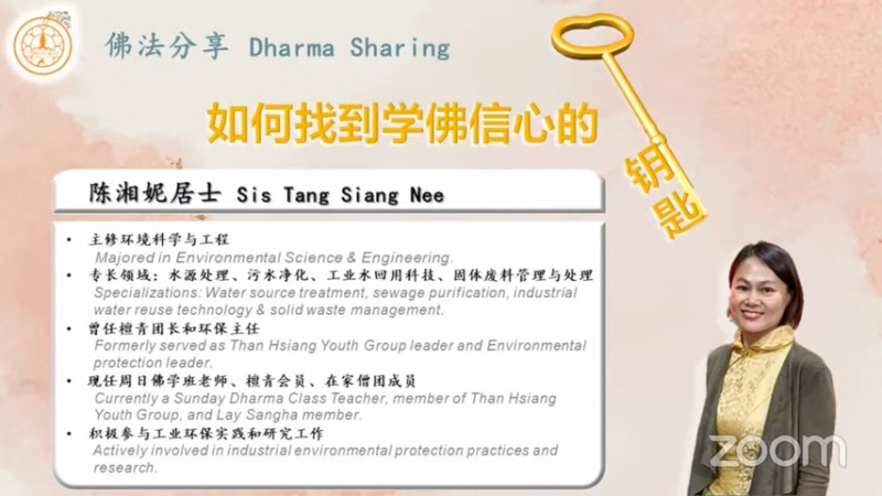 檀香在家僧团成员陈湘妮居士分享「如何找到学佛信心的钥匙?」