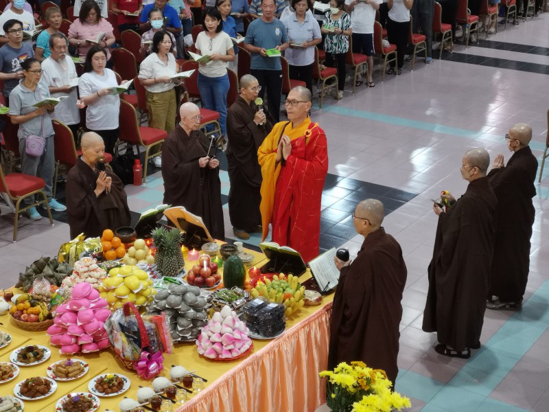 下午一时在五楼的多元化礼堂举办三时系念佛事。