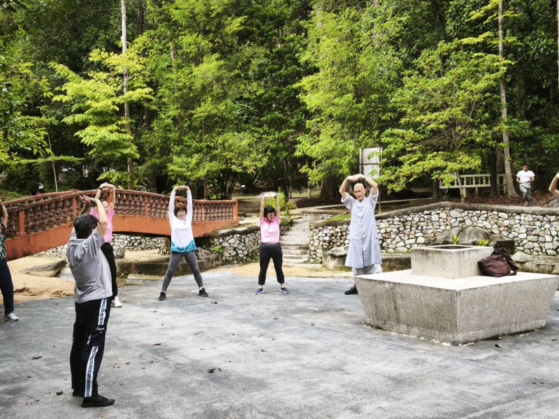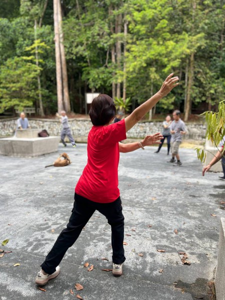 真如法师是最熟悉这个公园的环境,师父跟大家介绍了周围环境就带领大家在水池旁的空地做一些健身运动,难得我们来到一个大自然的氧吧!师父跟大家介绍了真华长老自创的一套运动叫“十方拳”包含了四套运动即拳打四方,转大法轮,腰部运动及手舞足蹈。感恩师父的介绍,师父也告知大家回去可以找到视频继续练习。大伙儿都学得很开心,流了满身大汗,稍作休息后就准备进行下一项活动。