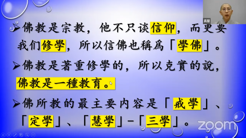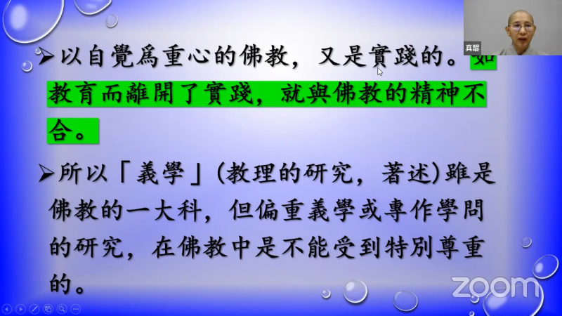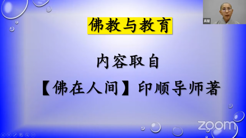 真醍法师慈悲分享印顺导师著《佛在人间》提到「佛教与教育」,强调佛教是着重修学的,所以克实的说,佛教是一种教育。