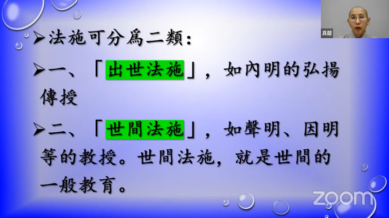 佛称这些为「法施」,是最有意义!因为布施是有功德的,努力于世间、出世间的法的教化,无论是个人或教团,都是有功德的。