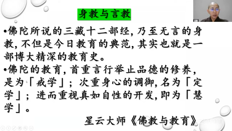佛陀所说的三藏十二部经,乃至无言的身教,不但是今日教育的典范,也是一部博大精深的教育史。