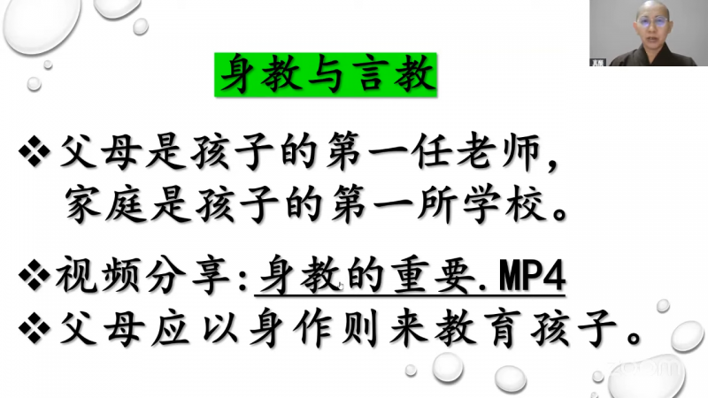 真醍法师分享「身教的重要」的视频,强调身为父母亲要非常谨慎自己的言行举止,应该以身作则来教育孩子。