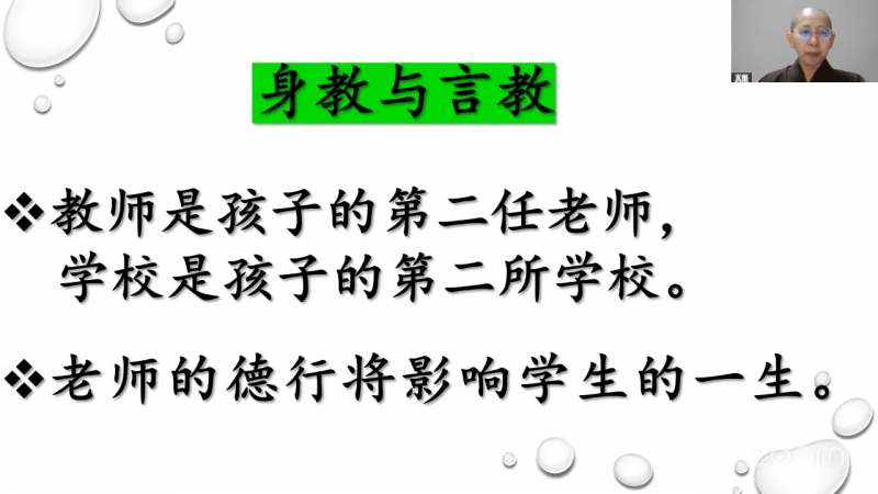 身教能在无形中发挥潜移默化的功能。我们要去落实在日常生活中。