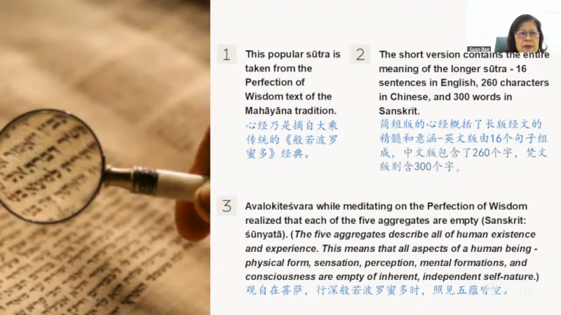 简短版的《心经》概括了长版经文的精髓和意涵:-