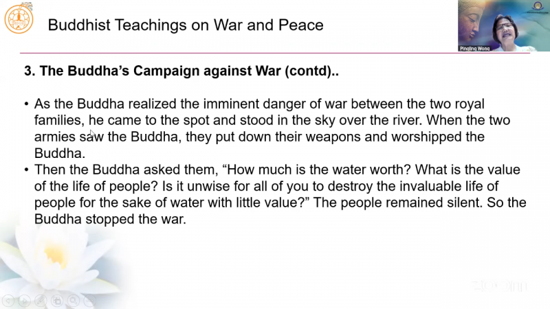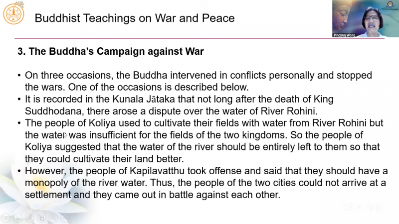 国际佛教大学教学助理黄品琳居士分享「佛教关于战争与和平的教义」