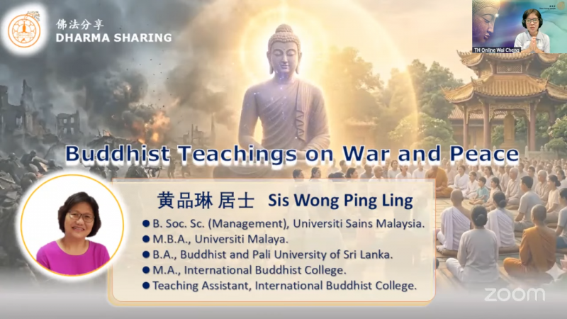 2026年3月27日(星期五)黄品琳居士分享「佛教关于战争与和平的教义」